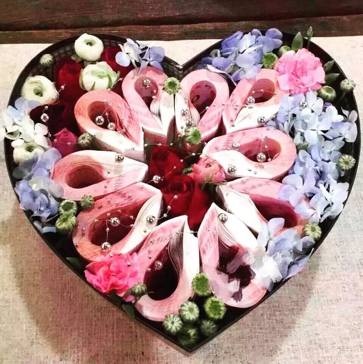 玫瑰花里的现金钞票