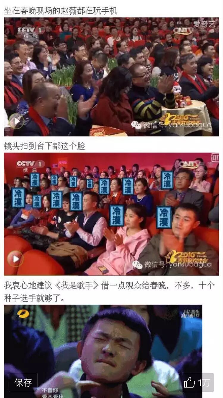 朋友圈里各种吐槽春晚的段子和图文