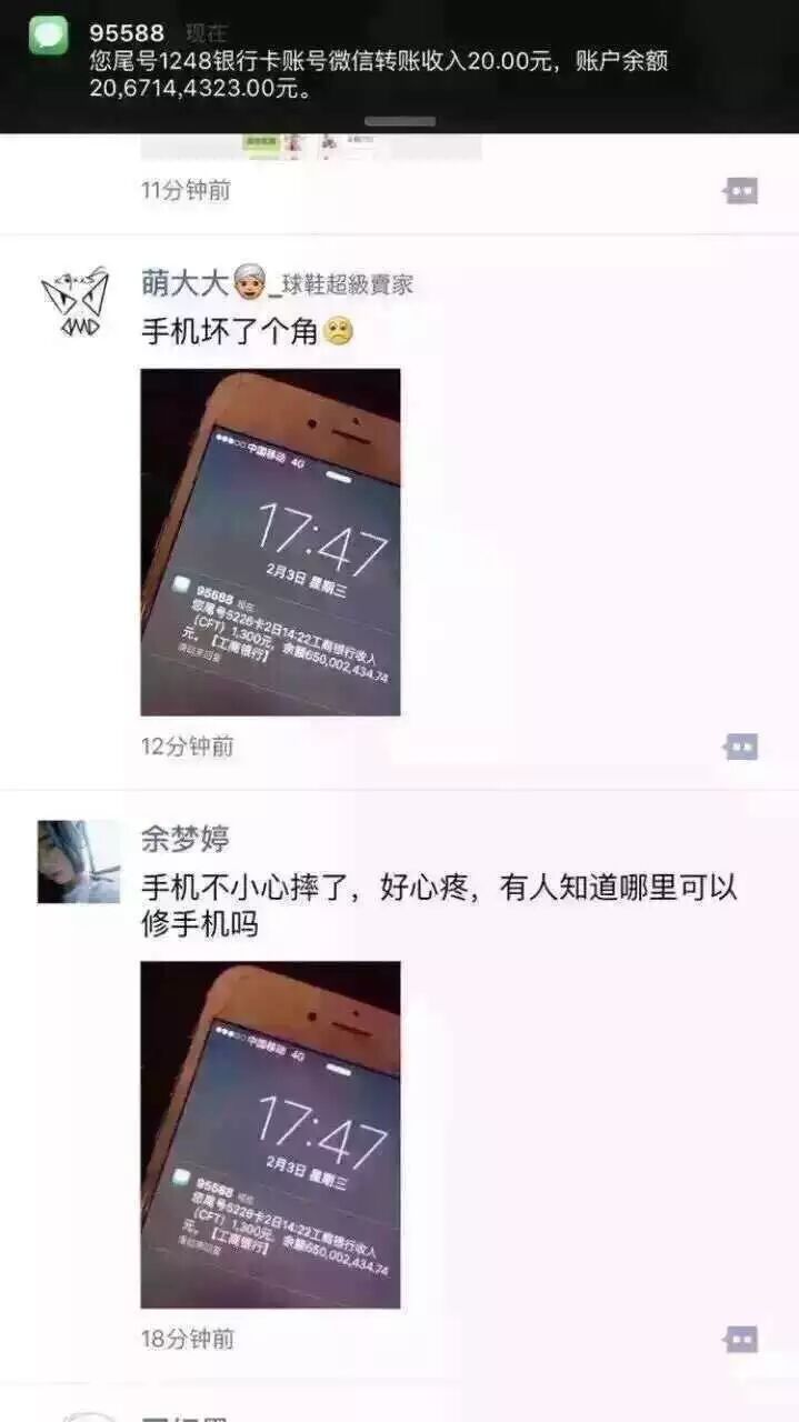也不乏有人用手机裂屏的图