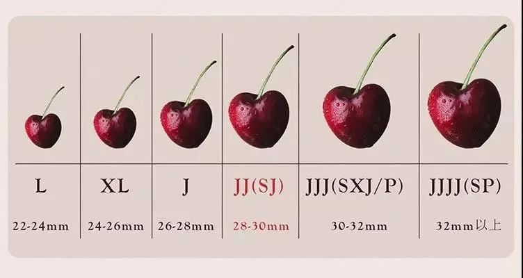 ►单果直径28-30mm称双钩,标识为XJ\SJ\JJ(Super Jumbo);