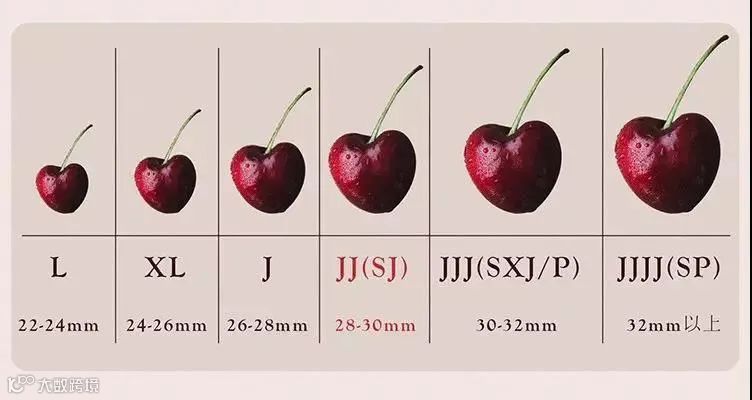 据了解,在智利等国家,“J”(Jumbo)是车厘子的分级常用单位,“J”的数字越多,代表樱桃的个头越大,其单价也会更贵。