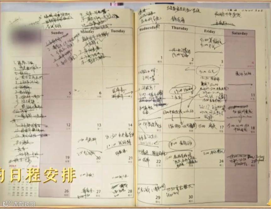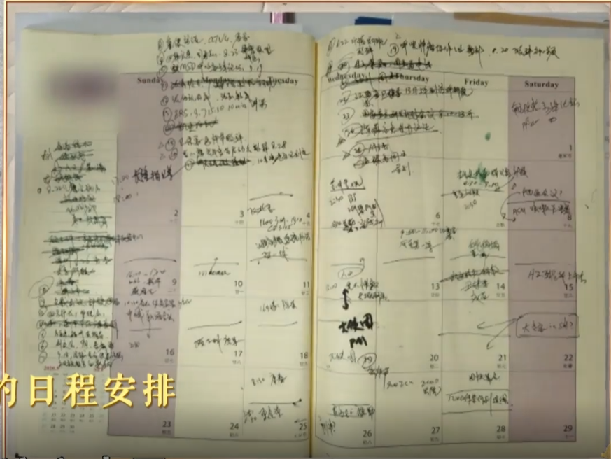 其中首次曝光的一张日程表冲上热搜。