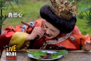 In an episode of the series, ancient China Empress Wu Zetian, who is played by a white actress, is eating insects, rats, jellyfish and hair, and invites two modern visitors, the program's hosts, to join the meal. As the visitors act disgusted, "Wu" explained it was "perfectly normal" to eat insects in China in the Tang Dynasty (618-907).