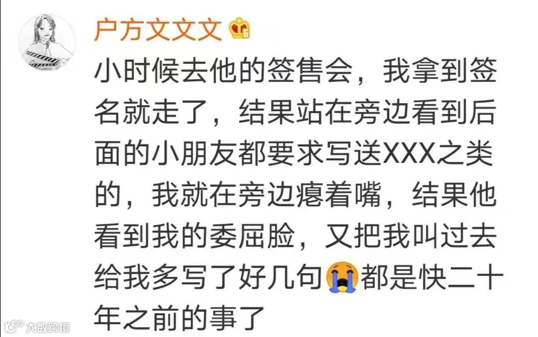 郑渊洁的温柔细腻常常表现在不经意处:主动找害羞的小粉丝合影,作为评委照顾小朋友的自尊心,签售会签完名也不嫌麻烦多写两句话。