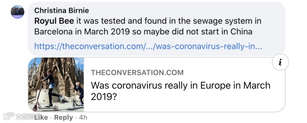 巴塞罗那2019年3月的废水样本中曾检测出新冠病毒,所以新冠或许不是从中国起源的。