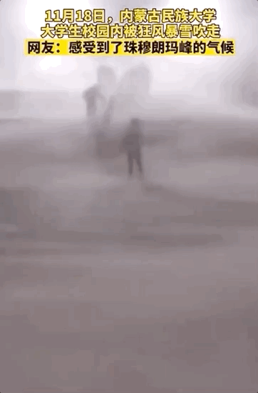 一名学生硬生生被吹着走