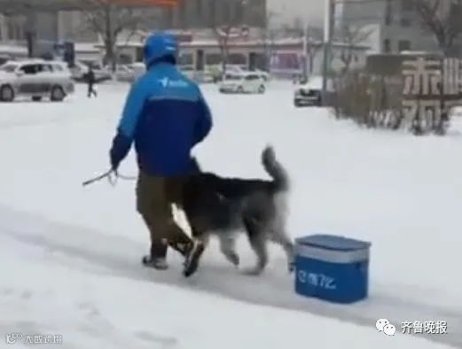 有外卖小哥牵着狗狗送外卖