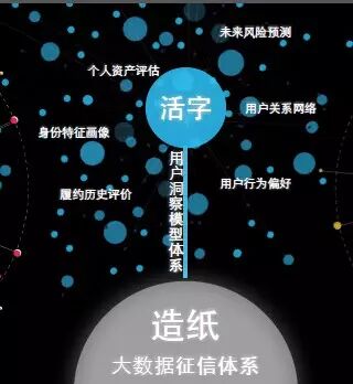 活字印刷:用户洞察模型体系,通过这套体系识别、发掘、认识到用户。十几个模型在两年内非常快速地专利化建立,从个人资产评估,身份特征画像,履约历史的评估,用户行为的偏好,用户关系网络的构建。