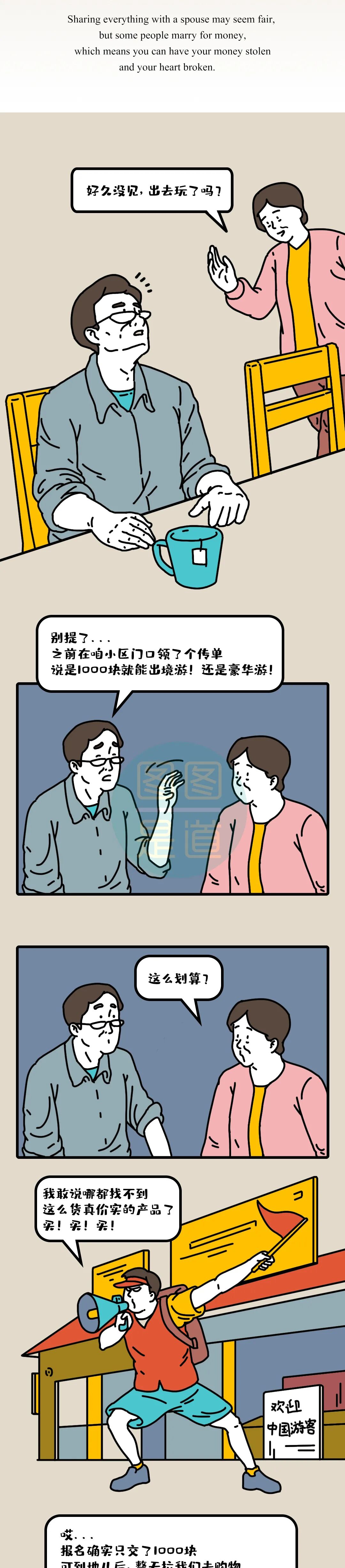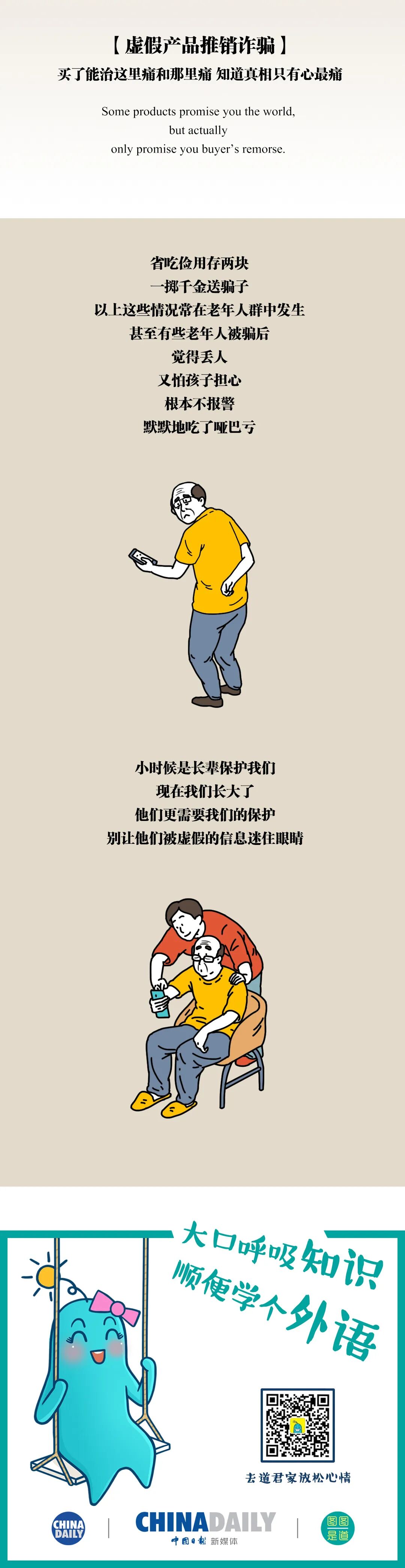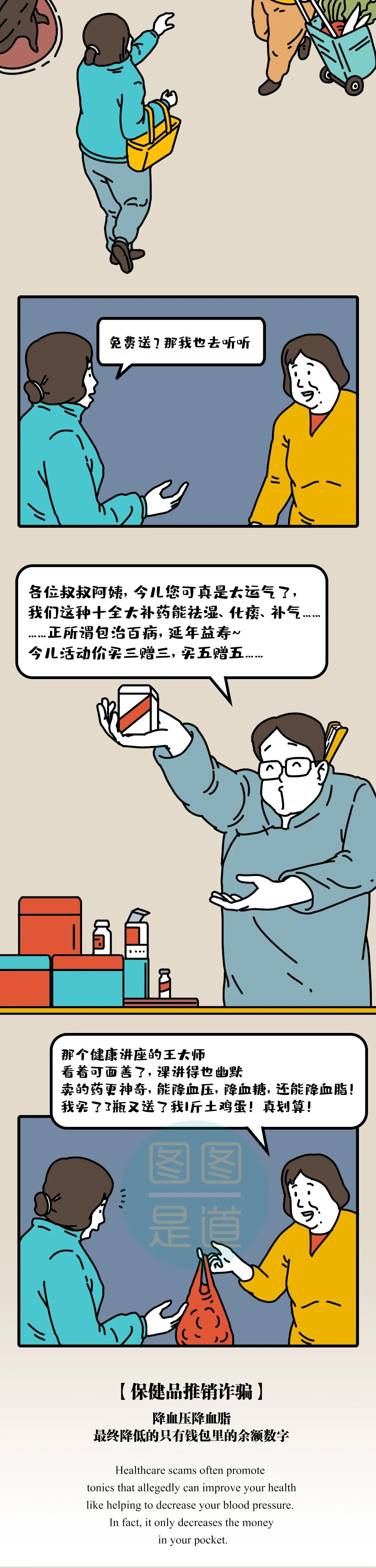 骗局(scams) 补品(tonics) 钱包(pocket)