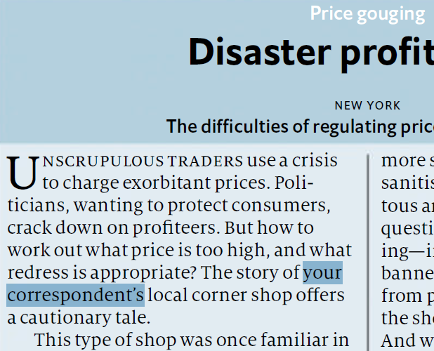 英国周报 The Economist 的 Correspondent 关于美国纽约的报道