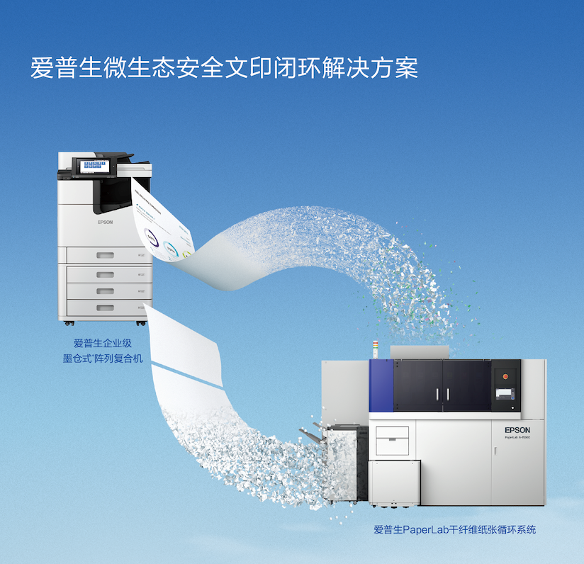 基于全球首创*1的绿色产品PaperLab,在此次进博会爱普生展区,还展出了亚洲首发的爱普生微生态安全文印闭环解决方案。它是由爱普生Paperlab干纤维纸张循环系统与搭载Heat-Free冷印技术的墨仓式®企业级阵列复合机产品结合而成,形成了从纸张打印到纸张再生的全流程环保,大幅延展纸张使用周期,在显著减轻环境负荷的同时,还构建了涉密信息的安全闭环,并赋予纸张更加广泛的使用价值,合力助推循环经济发展。