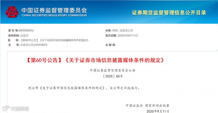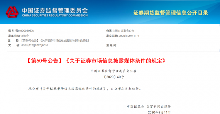 9月11日,证监会公布《具备证券市场信息披露条件的媒体名单》,自公布之日起生效。