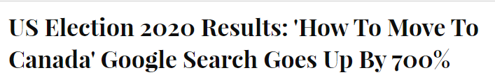 据《纽约邮报》报道,在激烈吵嚷的总统辩论一小时后,“移居加拿大”的相关话题在谷歌话题榜迅速上升。