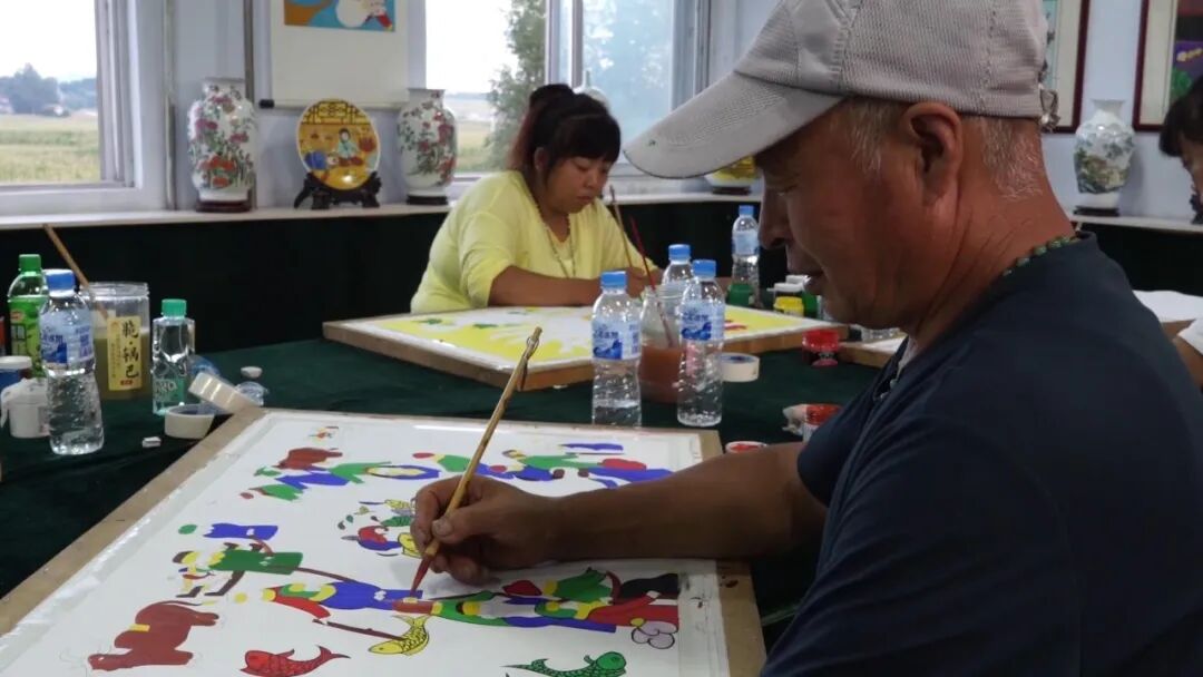 如今的农民画馆创作队伍已经达到5.2万余人,其中学生队伍4万余人,民间创作队伍1.2万人,能独立完成创作的2000余人,骨干作者400余人。农民画起源地东丰县红榔头村的农民画培训学校校长刘丹说:“很多作者都通过农民画改善了生活。农闲时候每个作者一个月在这里能挣3000块钱,去掉农闲每年可以额外收入两三万块钱。很多人通过农民画盖起了小洋楼,买起了小汽车。”