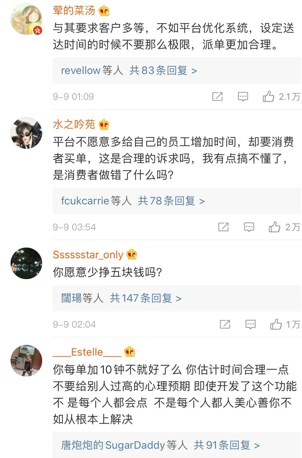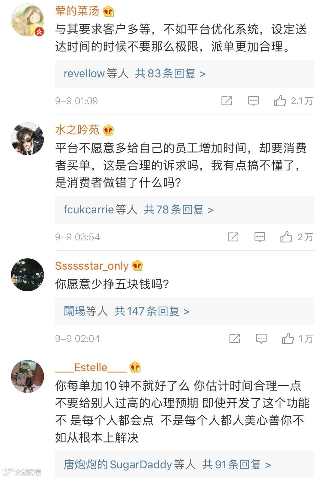 But this solution was criticized, as users thought it shirked responsibility by "passing the knife” to consumers. One top-rated comment said, "Rather than keep consumers waiting, the platform should optimize the system and rationalize the delivery time."