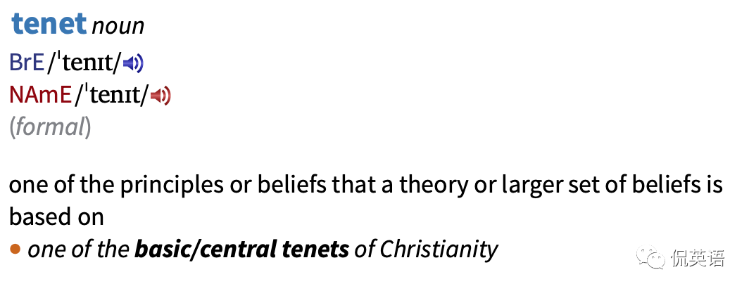 根据牛津词典,Tenet的定义是: