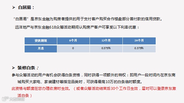 而且买房以后,还有京东的“装修白条”可以用,10万元装修+家电基本够用。无论从收益还是安全角度,京东和远洋的这次合作都让人觉得十分贴心,为用户带来购房住房装修一站式金融O2O解决方案,直戳用户痛点。如此华丽的大蛋糕,我已经坐不住了,还等什么,赶紧去分一块啊!