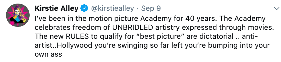 我在美国影艺学院(也是奥斯卡的颁奖单位)40年了。学院赞颂电影中自由表达的艺术。新规太专制、太反艺术了。好莱坞啊,你太左了,这是在作茧自缚。