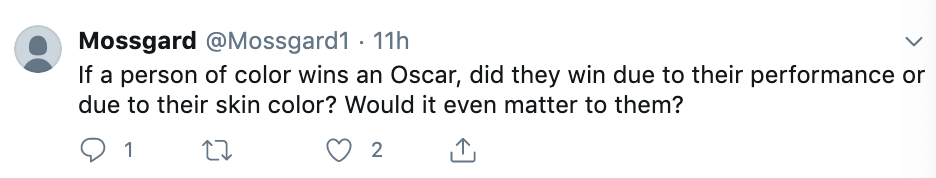 如果有色演员赢得了奥斯卡,那他们究竟是因为演技还是肤色呢?你认为这对他们来说没关系吗?