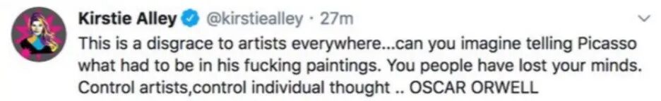 新规让所有的艺术家蒙羞。你能想象教毕加索画画吗?你们这些人简直就是疯了,控制艺术家和个人思想。
