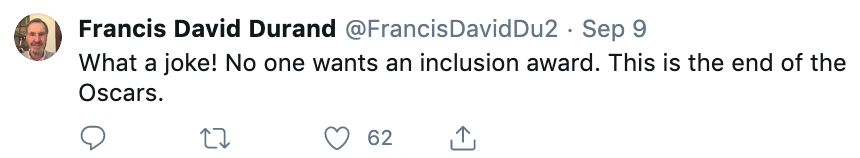 也有网友从种族主义的角度出发,认为这一新规其实对少数族裔影人也是不公平的。不仅少数族裔不公平,对白人也不公平。