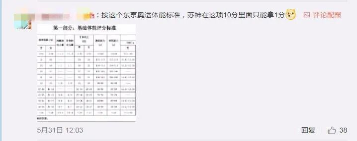 有网友按照这样的成绩对照体能测试表得出结论,苏炳添只能得1分。