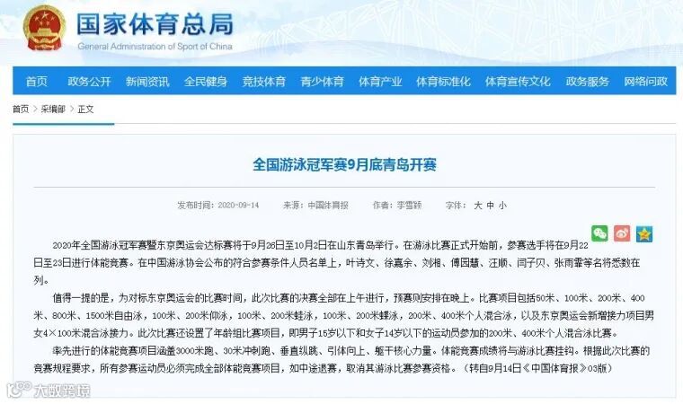 目前,体育总局方面尚未有进一步说明。