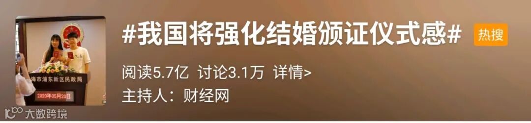《意见》引发网友热议,#我国将强化结婚颁证仪式感#的话题也冲上微博热搜。