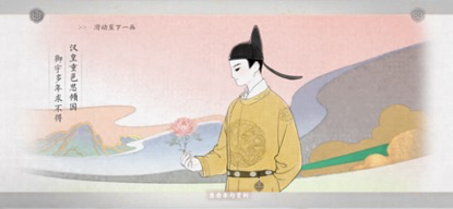 游戏以水墨画残卷的形式生动重现了唐玄宗李隆基与贵妃杨玉环宛转动人的爱情故事,《长恨歌》中的诗句则被巧妙地安排在每一画的首尾,既衔接起了剧情又给玩家留下了品味鉴赏的空隙。文字的起承转合配合水墨画风、典雅古韵,玩家也能在感官上更立体、真切地体会诗人白居易在凝练的诗句中寄寓的丰富情感。