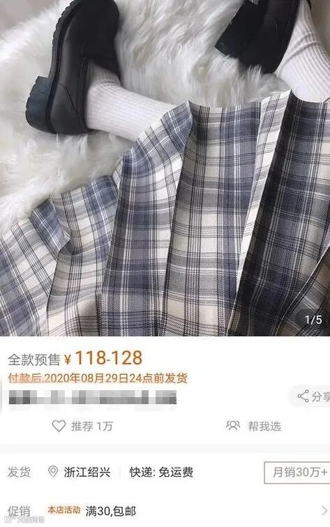 尤其在今年,大街上穿JK制服的女生越来越多,淘宝某店铺甚至出现单品突破30万的销量业绩。