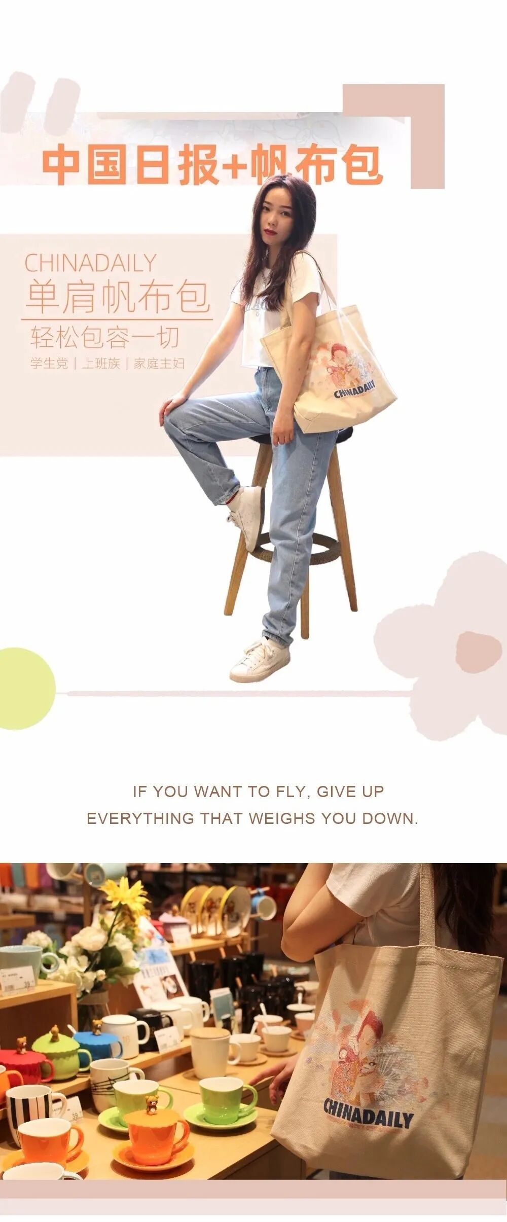 看了这么多YOUTH版的精美版面,屏幕前的你是不是有些心动了呢?那么小编就要为您带来我们的福利啦!即日起,凡是您订阅的周三版中国日报纸质版报纸,都将会收到一个我们特地为您准备的价值59元的精美周边帆布包。
