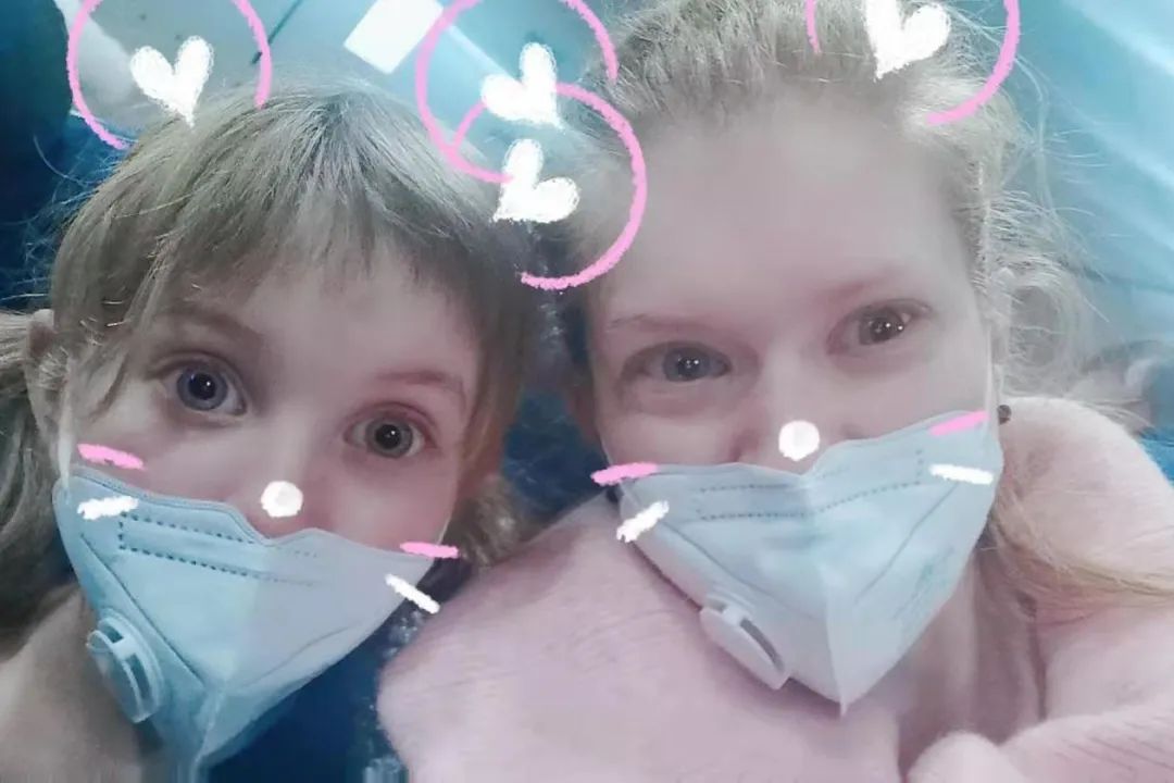 赫敏(左)和母亲在美国撤离航班上合影留念 图源:华尔街日报