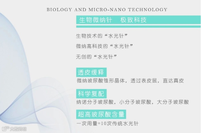 过去,玻尿酸的吸收主要靠注射或微针导入技术,也就是我们常说的水光针,以帮助玻尿酸穿透皮肤表层达到真皮层,但这些都是医美的范畴。