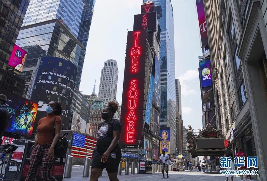 8月9日,戴口罩的行人从美国纽约时报广场走过。新华社记者王迎摄