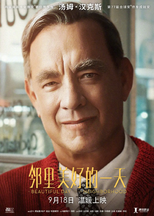 《邻里美好的一天》由玛丽埃尔·海勒执导,两夺奥斯卡最佳男主角的汤姆·汉克斯和艾美奖最佳男主角马修·瑞斯主演,于2019年11月上映。影片改编自真人真事,讲述了美国著名主持人罗杰斯与记者汤姆·朱诺德之间的友情故事。
