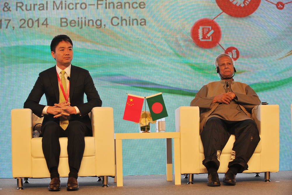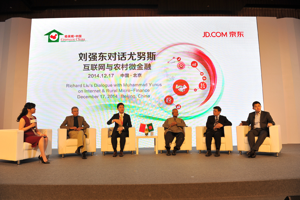 (12月17日,北京)京东集团与格莱珉中国战略合作发布会今天在北京隆重举行。京东集团创始人兼CEO刘强东、孟加拉国经济学家、格莱珉银行(Grameen Bank)创始人穆罕默德•尤努斯教授、我国著名的经济学家许小年教授和汤敏教授等重量级嘉宾相聚在北京,围绕如何利用互联网的力量创造符合中国国情的农村微金融服务、带动中国广大农民脱贫致富展开了深入的探讨。