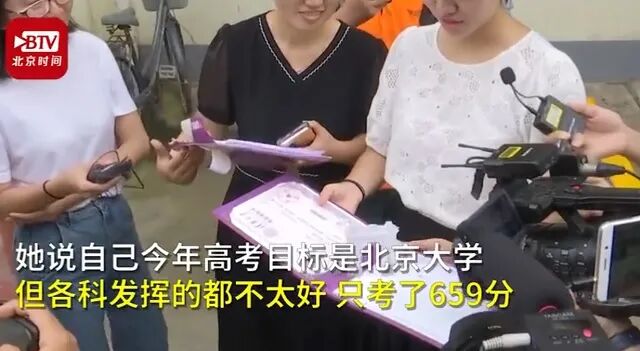 矫欣宇说自己今年目标是北京大学,但各科发挥得都不太好,只考了659分。