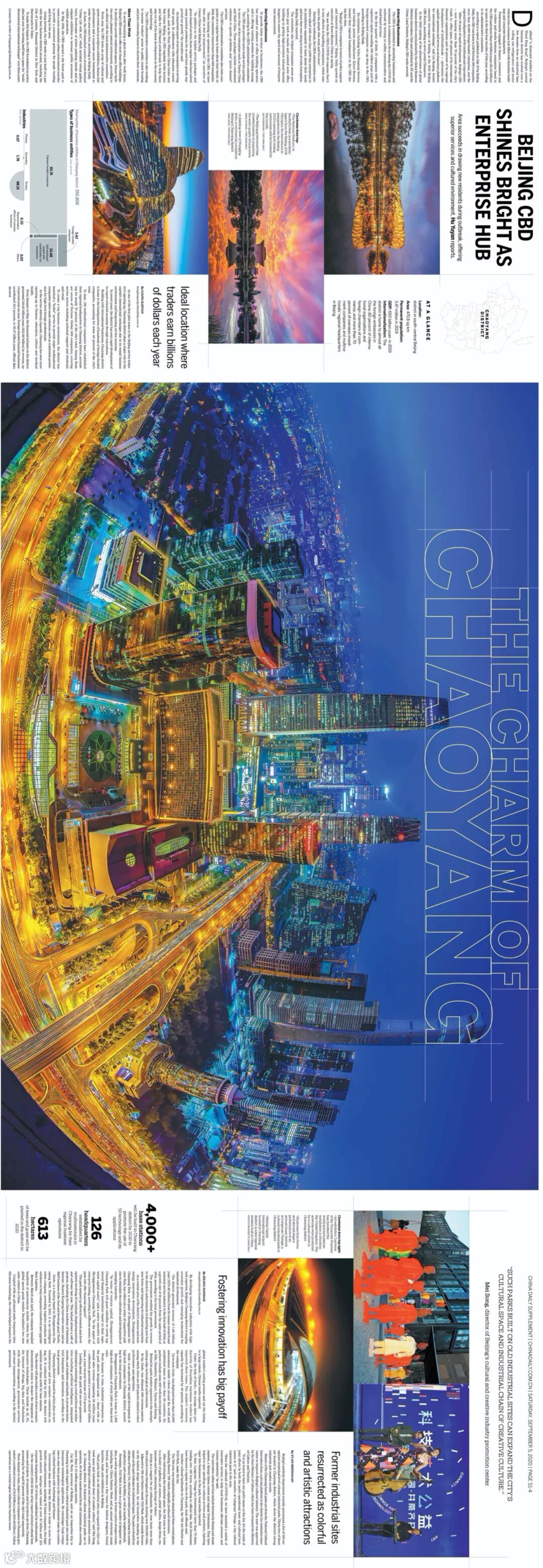 9月5日,《中国日报》作为国家英文日报,充分发挥对外传播独特优势,以国际化视角,重磅推出朝阳区八联版“The Charm of Chaoyang”。围绕“文化、国际化、大尺度绿化”三个方向,多维度展示朝阳区在经济、开放、环保、民生、文化各领域所取得的成就。