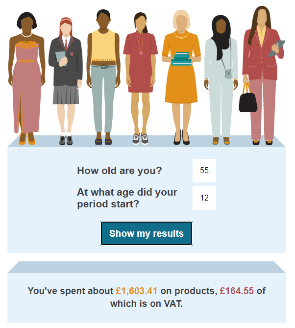 BBC曾推出过一款“月经开销计算器”,假设一位女性经期从12岁到55岁,那么她一生中需要花费1603.41英镑(约合人民币14693元)购买卫生用品。