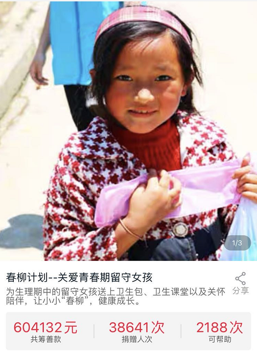 此外,阿里公益和腾讯公益等也都有相关的活动,为贫困地区的女性提供干净的内衣裤、经期卫生用品、生理卫生知识小课本等。