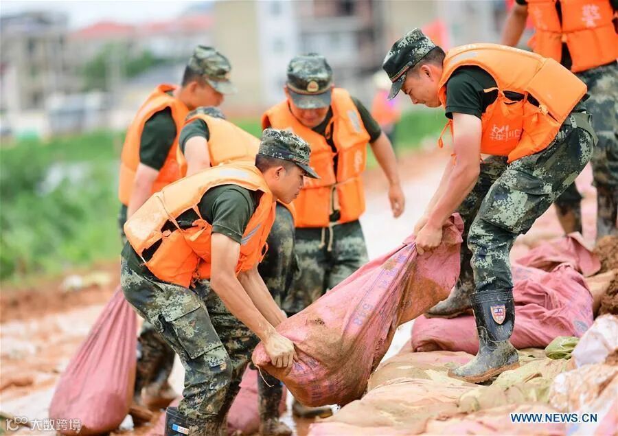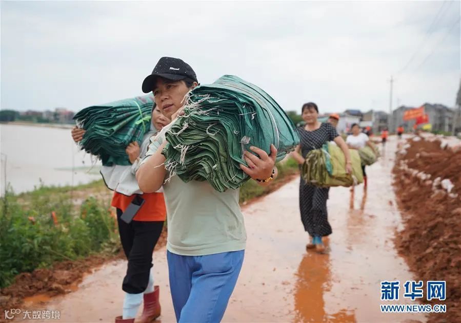 在江西鄱阳湖沿岸的防汛抗洪工作中,一支平均年龄50+的“阿姨团”格外卖力。