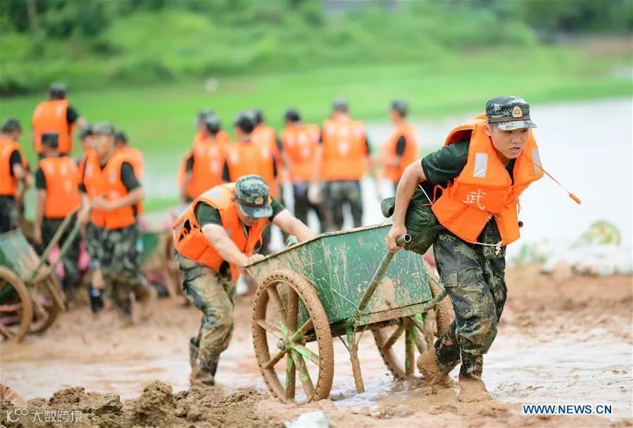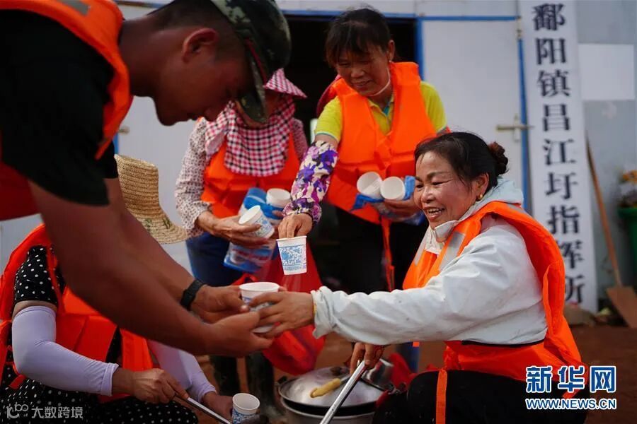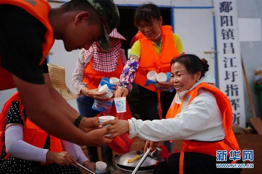 “前两天一直下雨,阿姨们帮我们煮红糖姜水。天气热了,阿姨们又送来了绿豆汤,我们干活都更有劲了。”提起“阿姨团”武警战士们连连赞叹“老乡们都很亲切,让我们感受到了家人一样的温暖”。