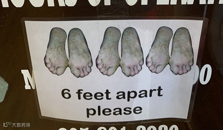 同一个世界,同样的携手抗疫。国外一些公共场所重新开张,为了督促人们佩戴口罩,保持社交距离(social distancing),在标牌上也下足了功夫。