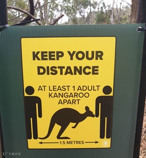 行人之间请保持至少一只成年袋鼠身长的距离。