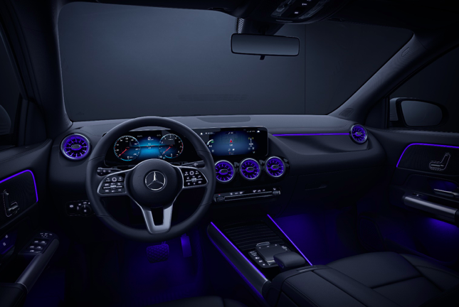 不仅车内空间更加无拘无束,全新GLA SUV充满科技感的双10.25英寸高清触控联屏、炫酷的64色氛围灯和“走心炫光出风口”,更是主张“颜值即正义”的新生代人群的心头大爱。