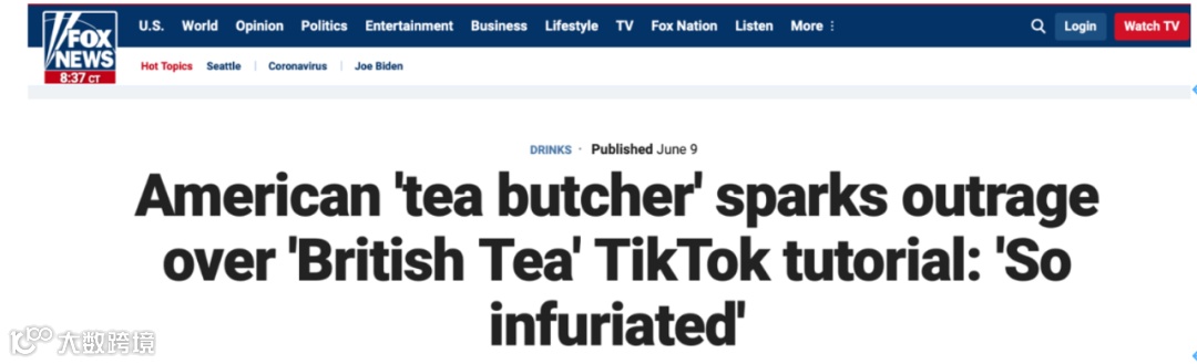 福克斯新闻网:美国的“茶叶糟蹋者”(tea butcher)在抖音发布的教学视频惹众怒——“太让人生气”