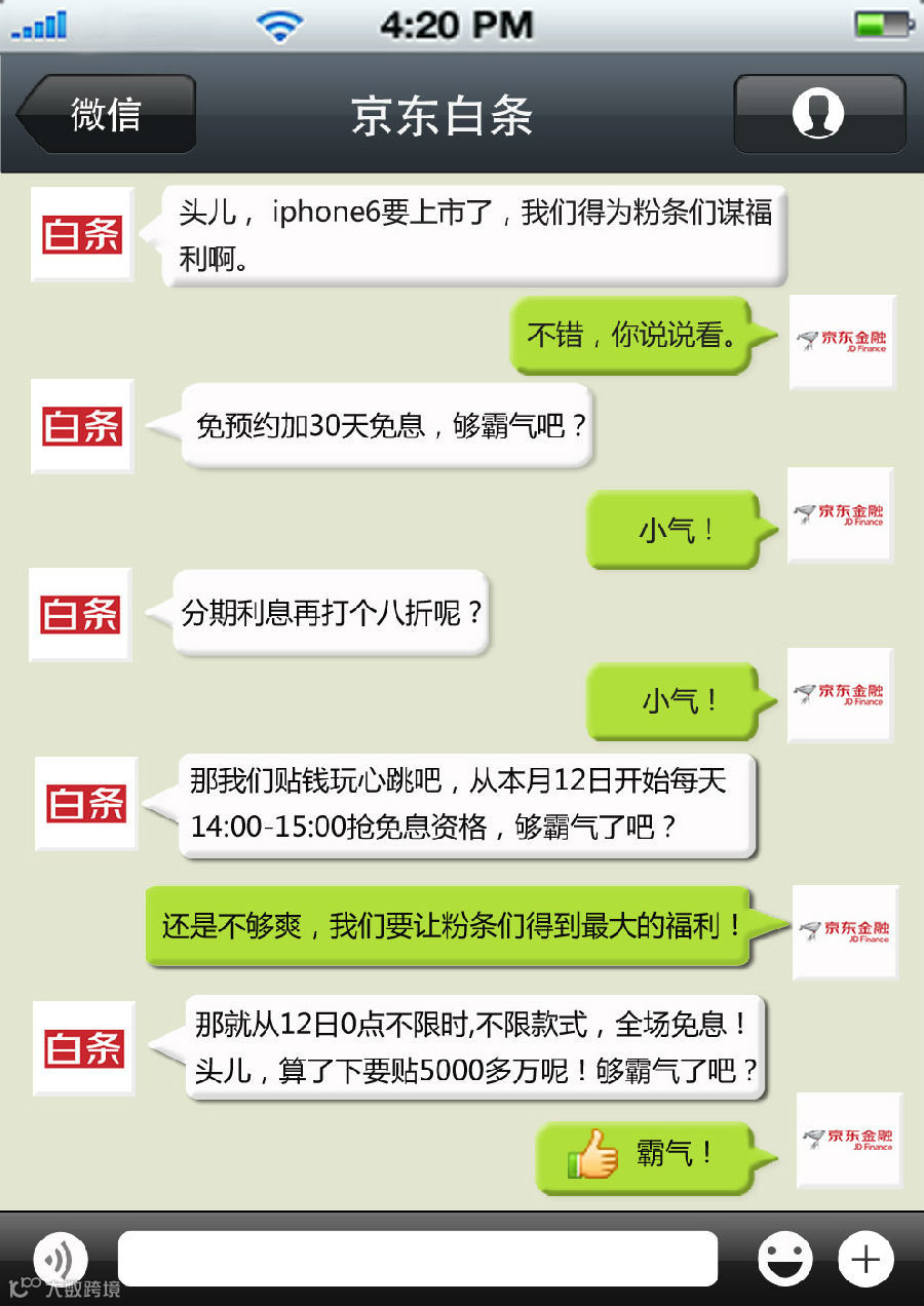 以下为白条君与京东金融ceo的一段微信截屏..............