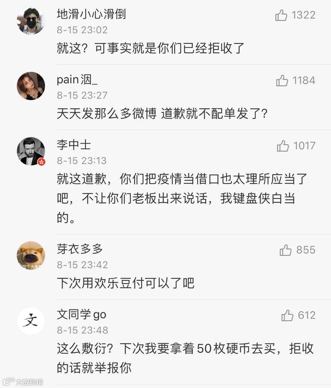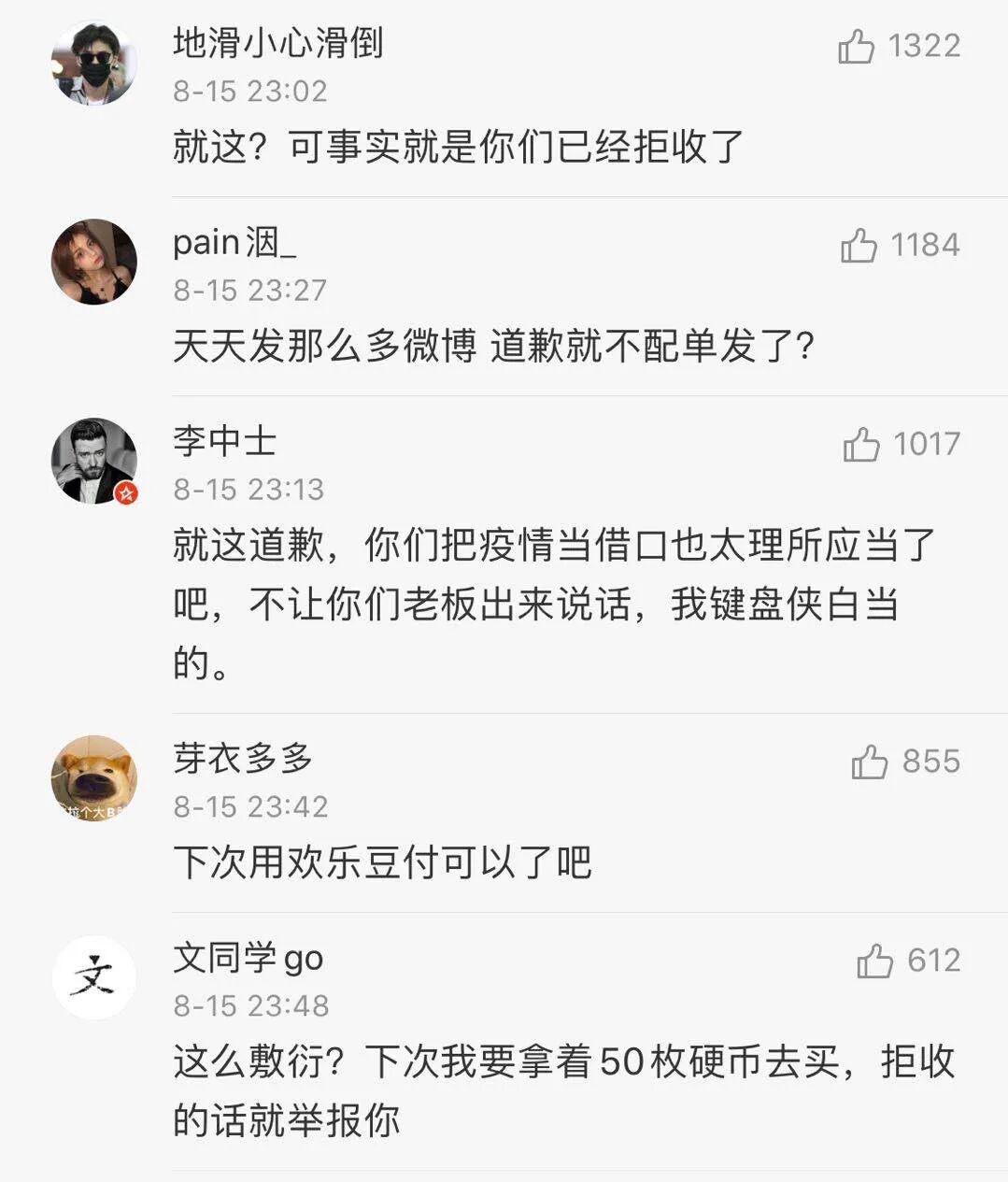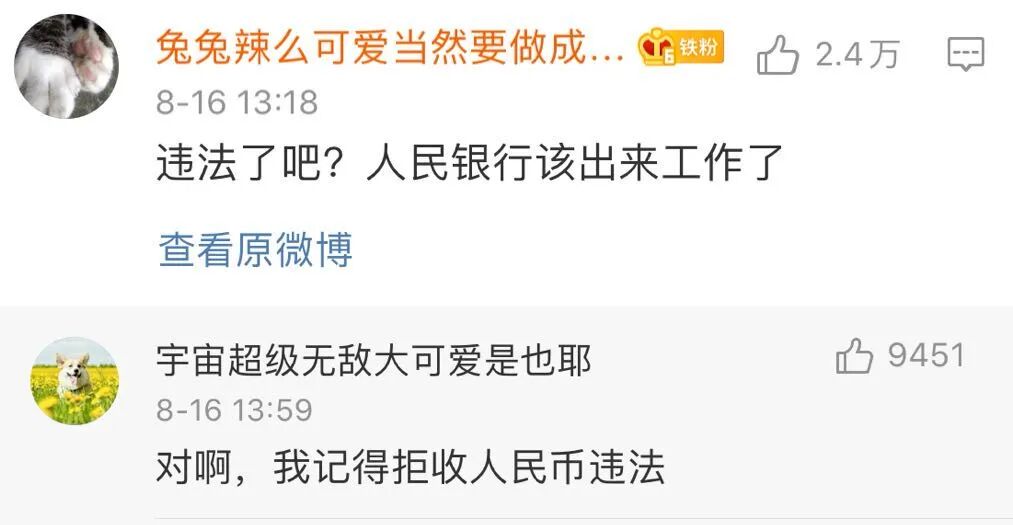 "It is against the law to refuse taking the legal currency just for the sake of convenience," wrote a Weibo user under the name Zuilitiaodeng.
