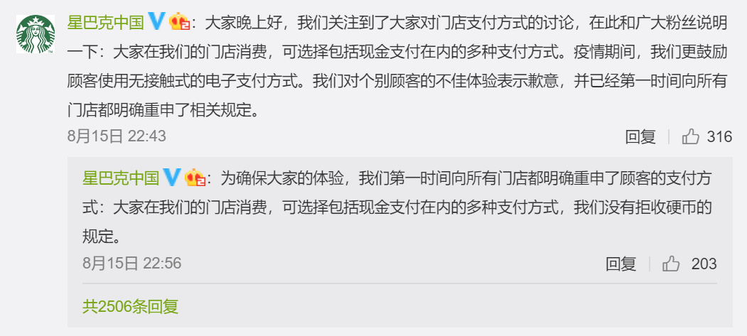 但星巴克这一回应并未被网友接受。