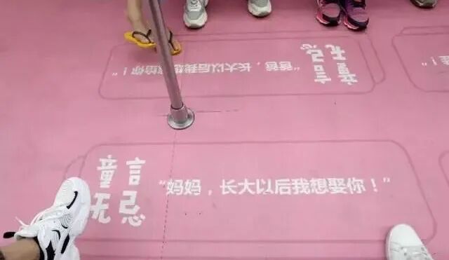 The floors and walls of a female-priority carriage on Metro Line 1 were plastered with the phrases "Dad, I want to marry you when I grow up" and "Mom, I want to marry you when I grow up."